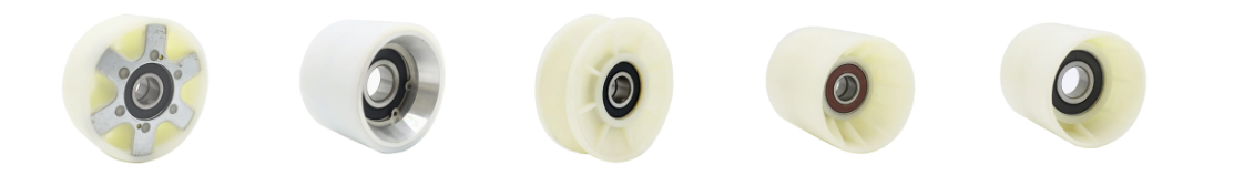 Roltraprollen van hoge kwaliteit zijn doorgaans gemaakt van technische kunststoffen zoals nylon en polyurethaan, en bevatten precisielagers. Deze structuur dient om trillingen en geluid te verminderen.